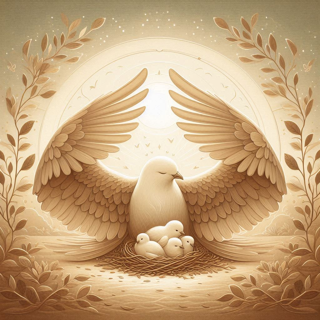 God beschermt je, zoals een vogel haar kleintjes beschermt onder haar vleugels.