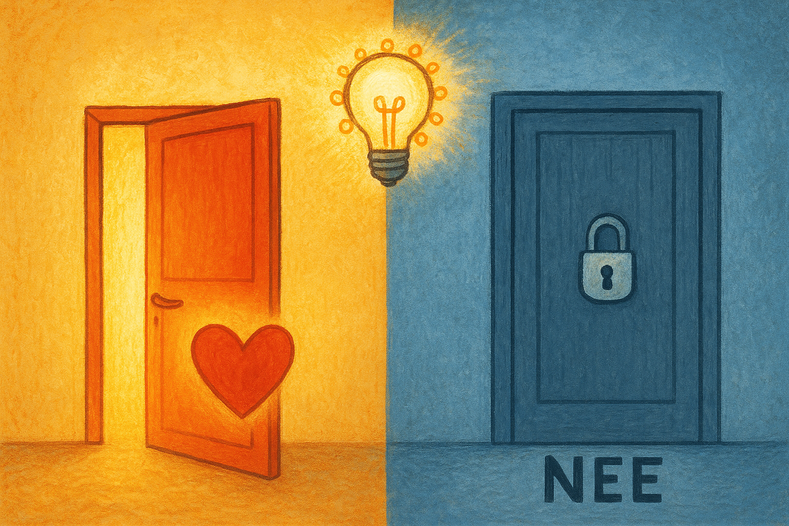 - Rechts: beelden/woorden van openheid (vb. een sleutel, een hart, een hand die reikt…)
