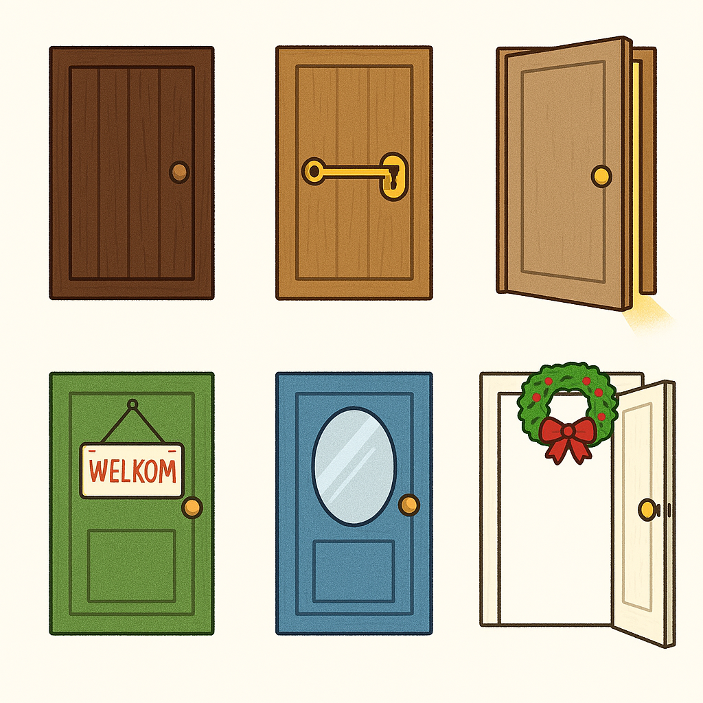 Één open deur: symbool voor welkom, gastvrijheid, warmte