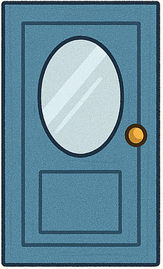 - Gebruik koude kleuren (blauw, grijs) bij de gesloten deur.