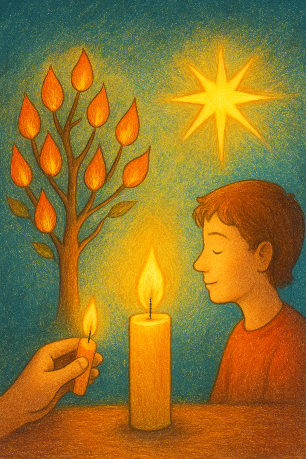 We bouwen voor de laatste keer ons lichtpad op. Elk lichtje herinnert ons aan een stap op weg naar Kerstmis. Vandaag voegen we vrede en verbondenheid toe. Zoals Jezus klein en kwetsbaar werd geboren, zo begint ook vrede klein – bij ons.
