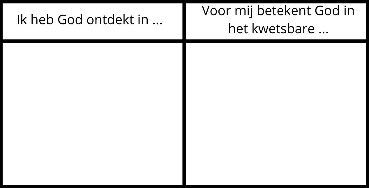 Onze lessenreeks had als titel "Kerstkring: God als/in het kwetsbare". Vandaag denken we na: Waar heb jij iets van God ontdekt in het kleine en kwetsbare?