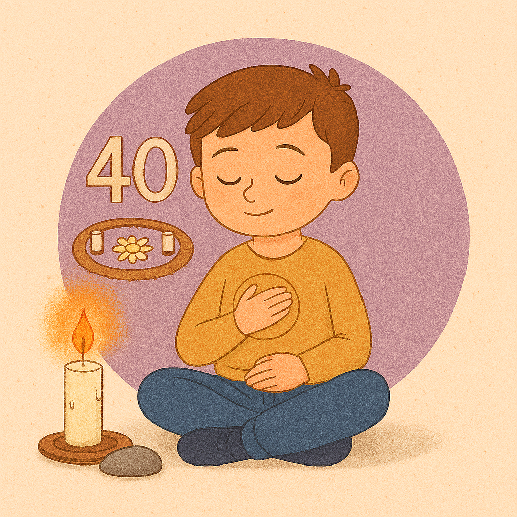 - De kalender toont een pad in 6 grote stappen – jullie 6 lessen – met kleine vakjes die symbool staan voor de 40 dagen.