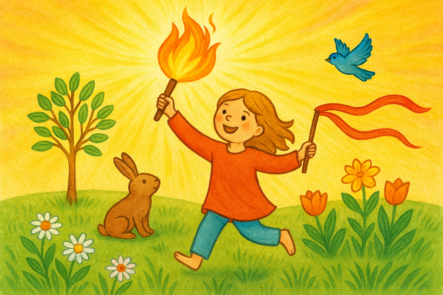 - Lln nemen hun creaties mee (vlam, windlint, nieuw leven symbool).