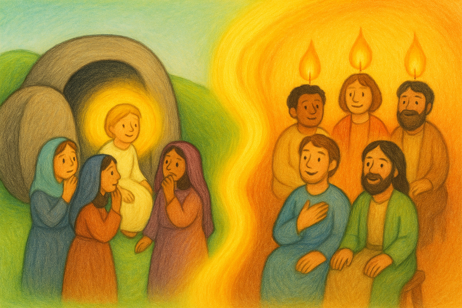 Nu gaan we naar buiten, zoals ook de vrienden van Jezus naar buiten gingen met nieuw licht.