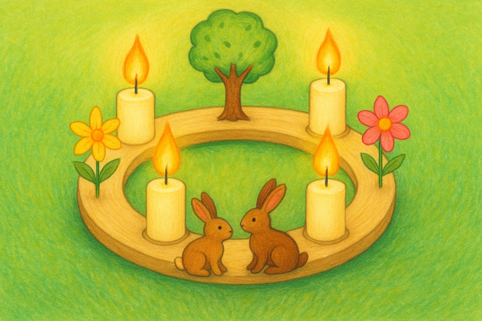 - De jaarring staat in de kring. Eén kaars brandt al van les 1.